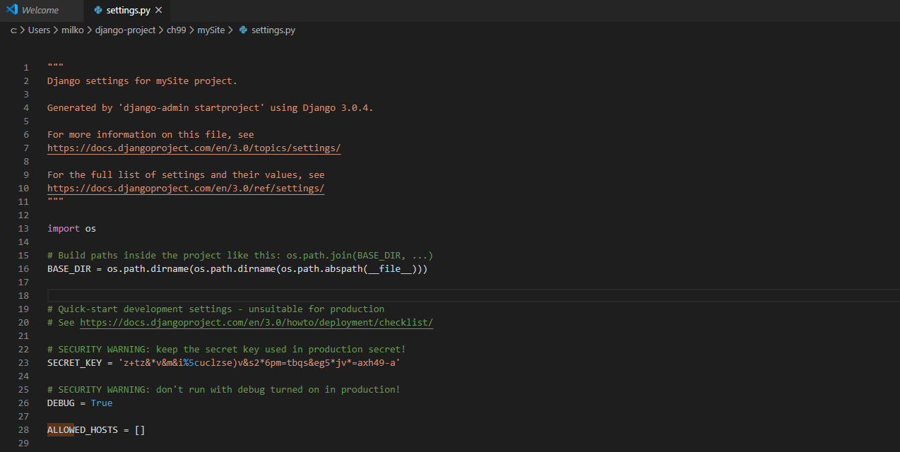 (dJangoVenv) C:\Users\milko\django-project>ren mySite ch99