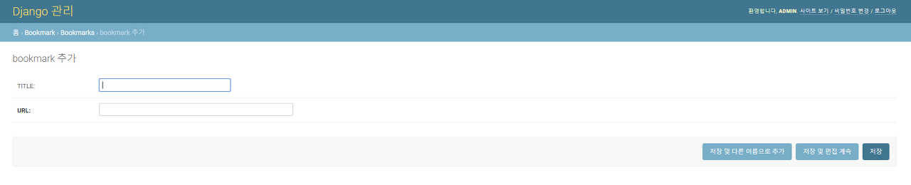 제가 만든 Bookmark 옆에 추가 버튼을 클릭해보면 title과 url 넣는 모습이 보이네요.
