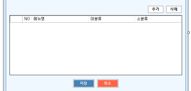 사진을 보시면 알 수 있듯이 저는 DataGridView 안에 대분류 콤보박스와 소분류 콤보박스를 만들었습니다. 대분류와 소분류는 MENU_INFO 테이블에 있는 데이터를 갖고 세팅합니다.