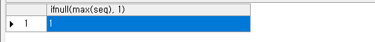 SELECT IFNULL(MAX(SEQ), 1) FROM TABLE_NAME;