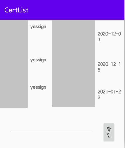 저는 버튼은 다른 용도로 사용할 예정이라 그냥 화면을 로드할 때 바로 인증서목록이 뿌려지는 것으로 설정했습니다. 이렇게 하니 정상적으로 목록이 보이는걸 확인할 수 있네요!!