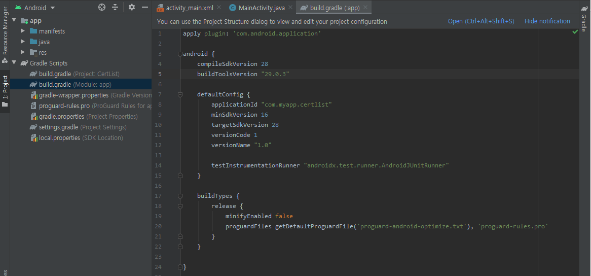 1) build.gradle (Module: app) 또는 activity_main.xml에서 recyclerView추가하기